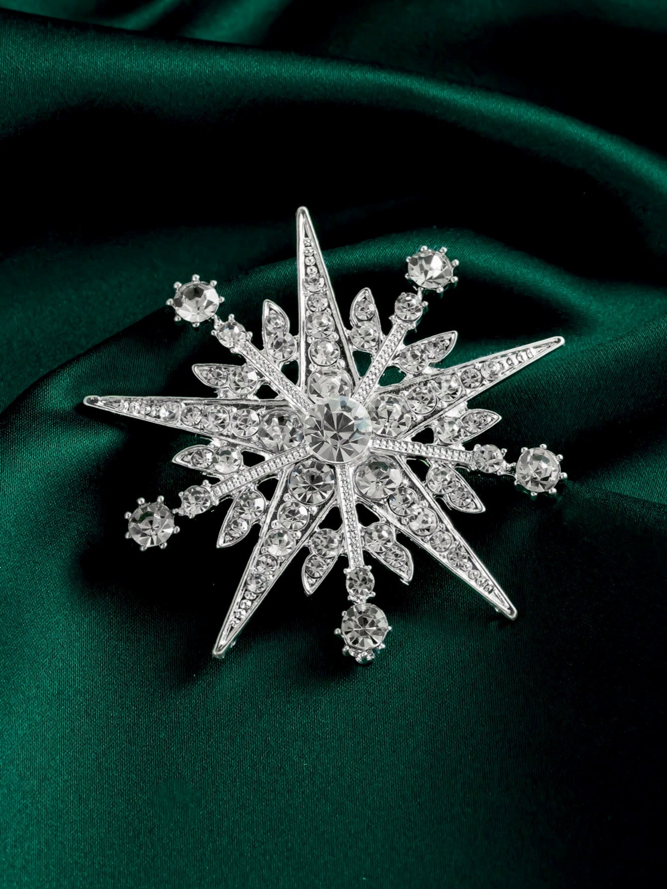 Radiating brilliance like a celestial beacon, the Silver Northern Star evokes classic elegance through a dramatic starburst design. Its mirrored stones and pointed arms reflect light effortlessly, adding dimension and sparkle to any formal ensemble. A faultless choice for black tie and gala opens.