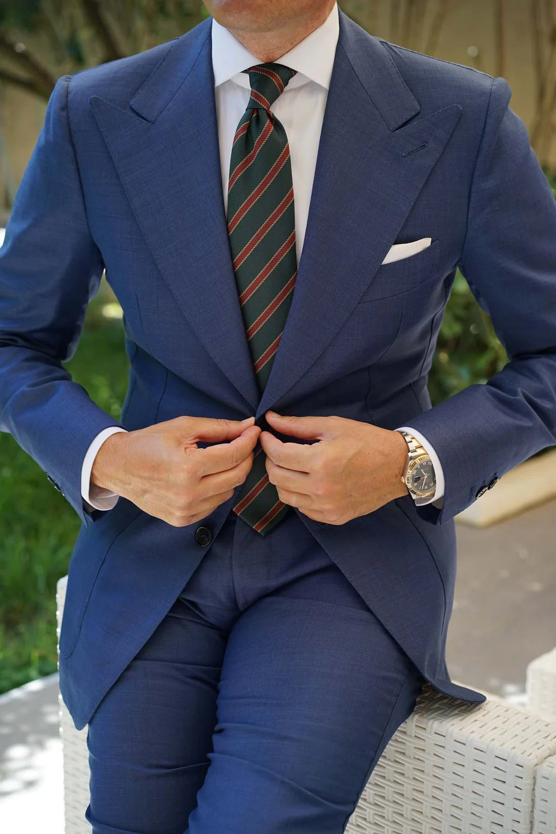 The Canterbury Green with Royal Red Stripes Necktie by OTAA blends old-school charm with confident colour contrast. Featuring a rich forest green base woven with textured detail, this tie is punctuated by diagonal stripes in regal red and gold—a nod to traditional British prep and Ivy League sophistication. Whether styled for race day, business, or cocktail events, this tie strikes the perfect balance between tradition and flair.